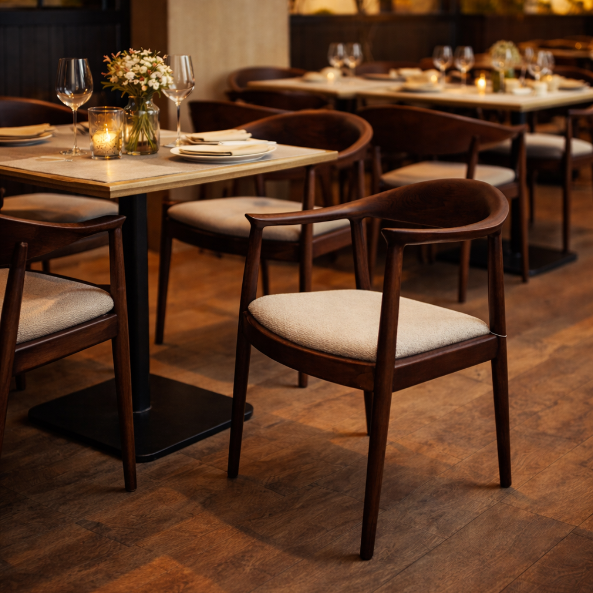 - Refined 70s-inspired silhouette for modern or classic dining rooms