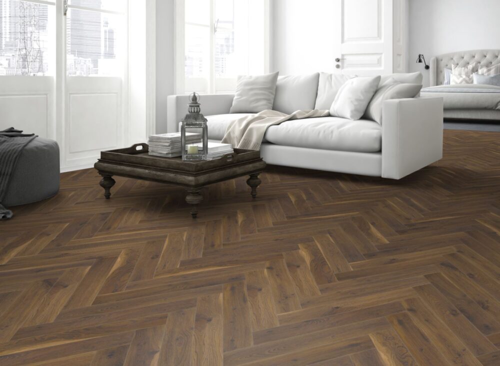 Fusion Premium Coffee Oak Grey Herringbone 12mm Laminate Flooring