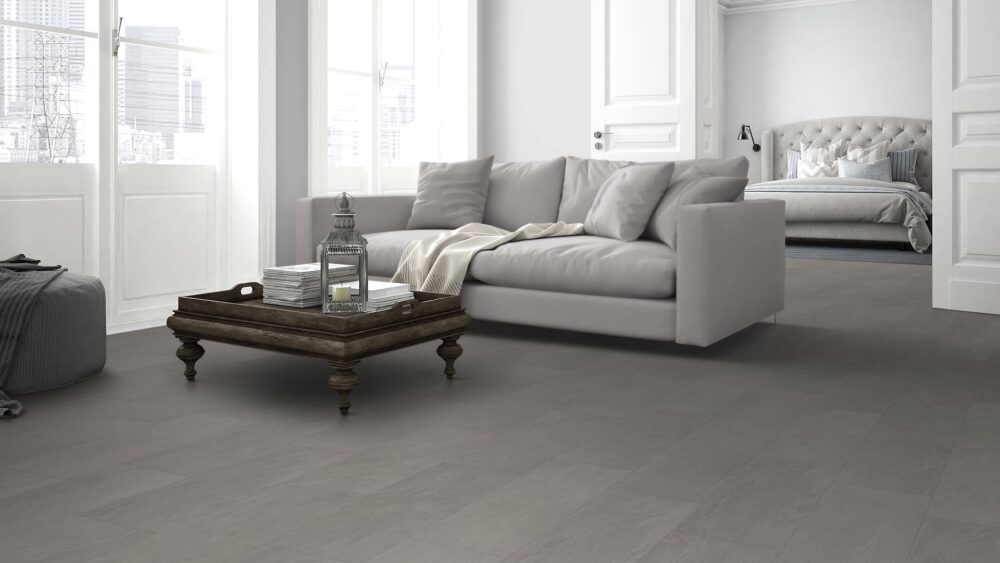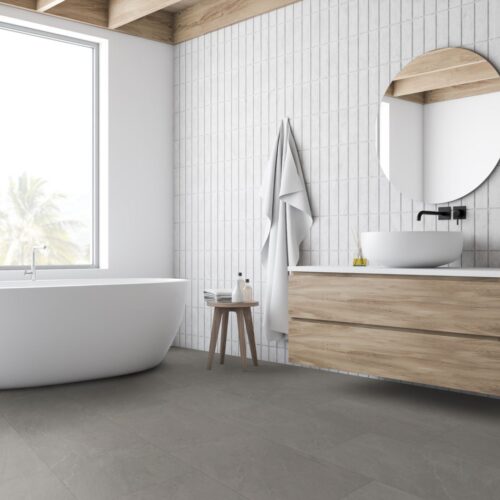This stunning rigid core vinyl offers a traditional tile pattern. Light Grey Slate features a robust “Core” of limestone and stabilisers, enhancing durability, stability and dent resistance.
