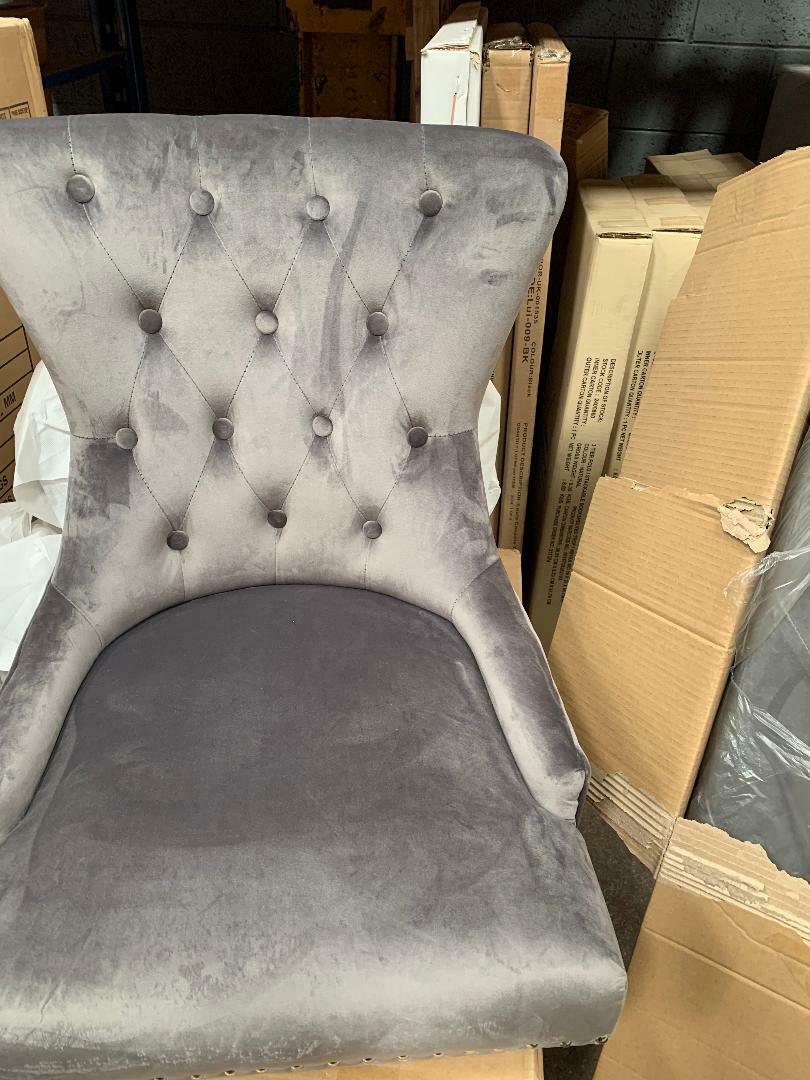 - A stylish and elegant addition with chrome French-style legs and plush grey velvet upholstery.