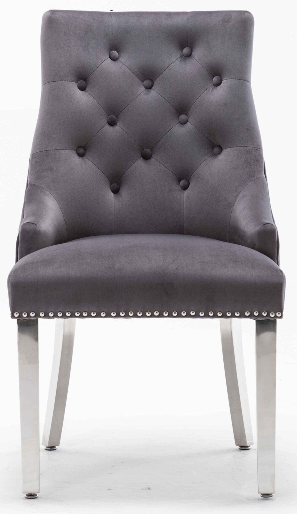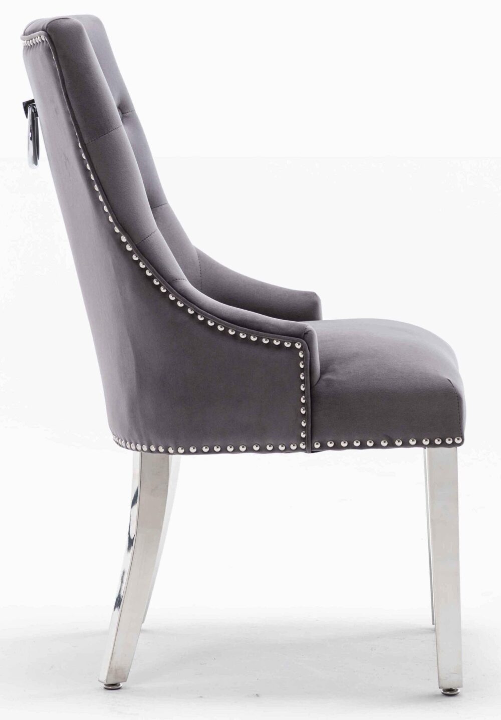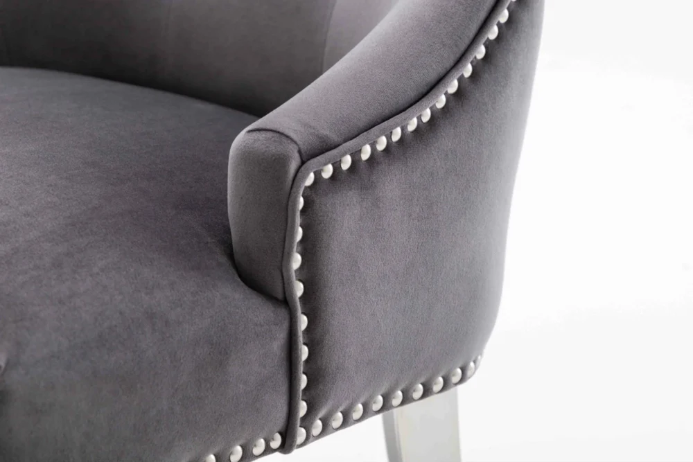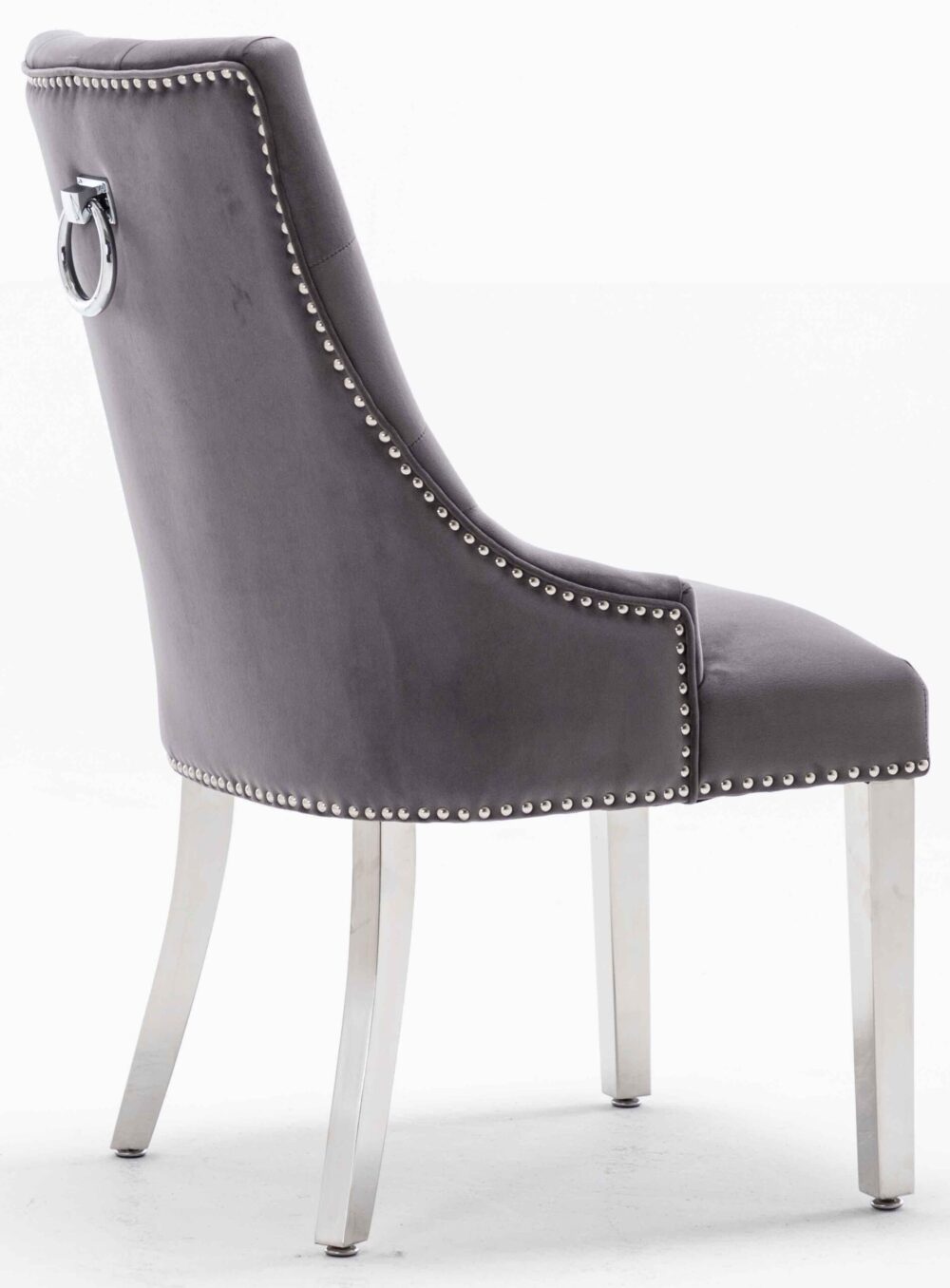 Louis 120cm Grey Marble Dining Table + Knightsbridge Dark Grey Knocker Plush Velvet Chairs