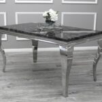 Introduce a touch of timeless sophistication to your dining space with the Louis Black Marble Dining Table, paired with the sleek Lucy Lion Knockerback slim dining chairs.Key Features: