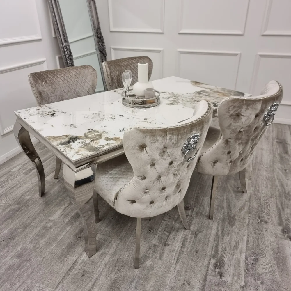 Louis Chrome Ceramic Marble & Chrome Dining Table 3 Colours