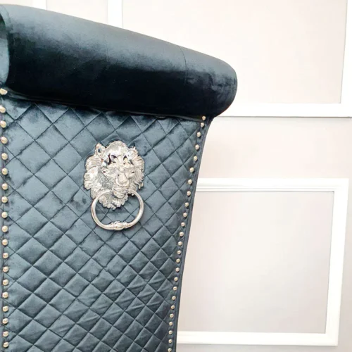 Louis Marble & Chrome Dining Table With Lucy Slim Quilted Lion Knocker Velvet Chairs & 140cm Bench