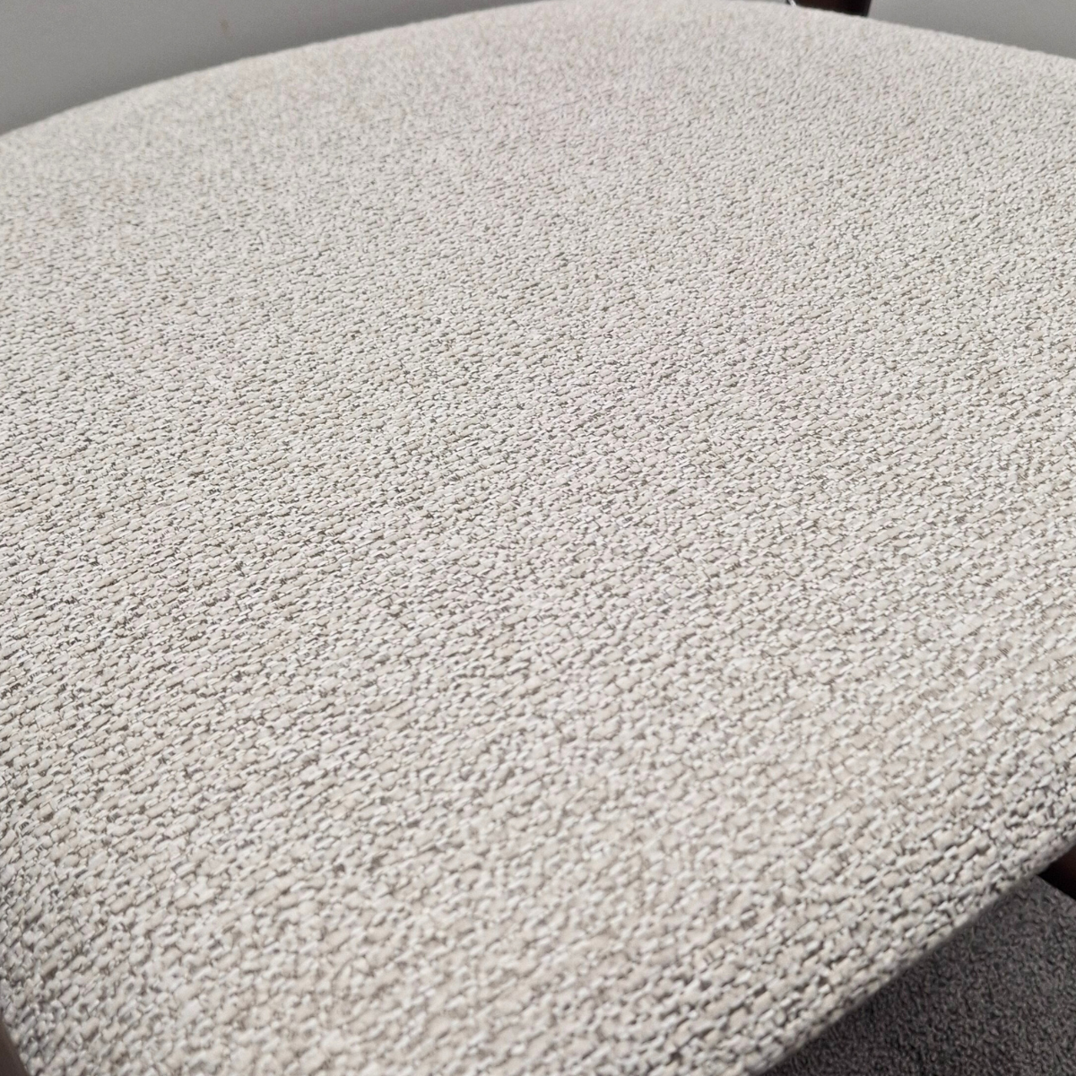 - Oatmeal boucle upholstered seat