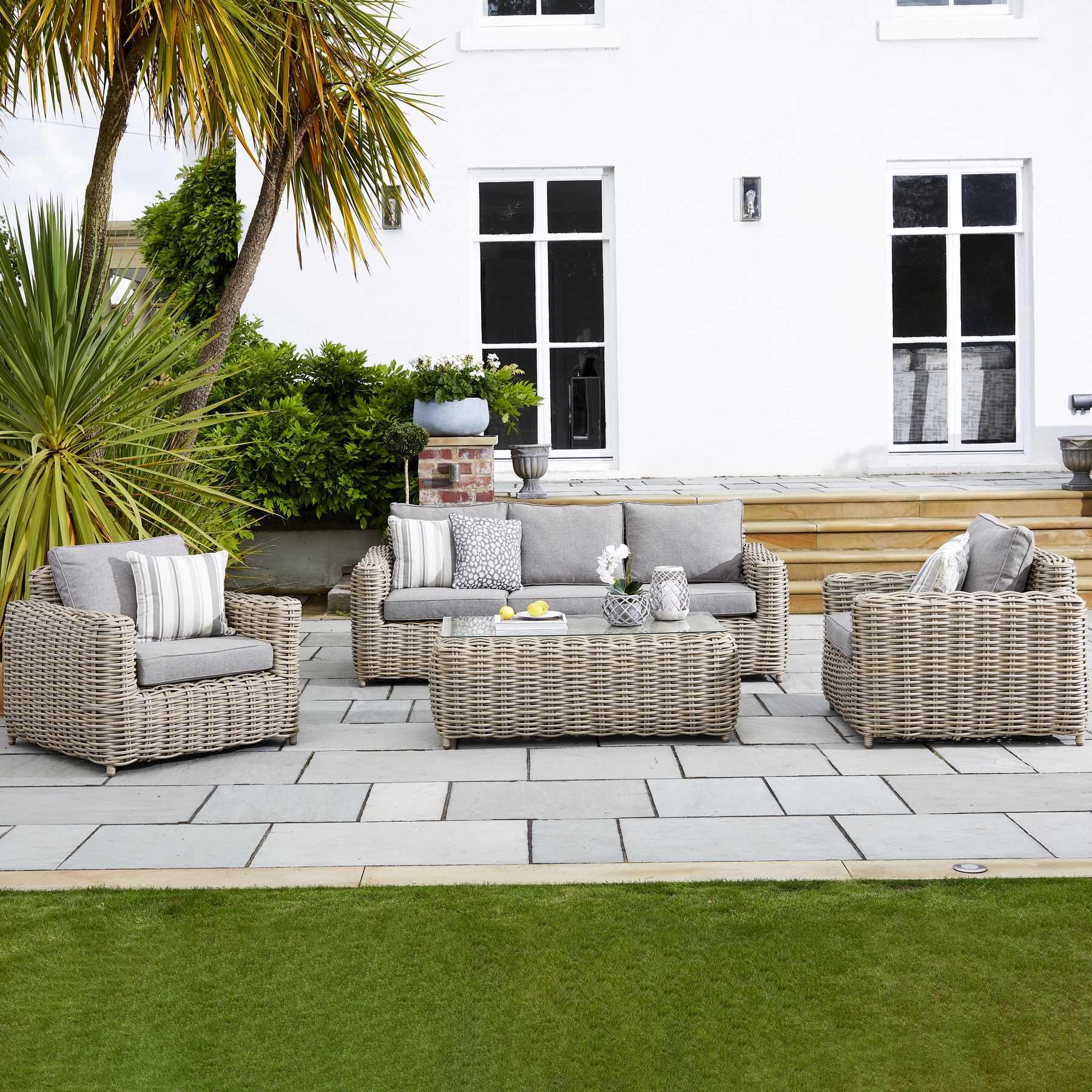 Transform your garden or patio with this stylish 5-seater outdoor set, designed for comfort, durability, and year-round use. Crafted with a premium 12mm round HDPE wicker weave, it offers a natural look with superior resistance to the elements.