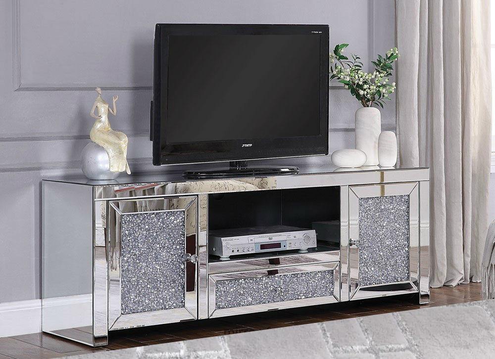 Crushed Diamond Mirrored TV Stand – Glamorous Glitz Unit