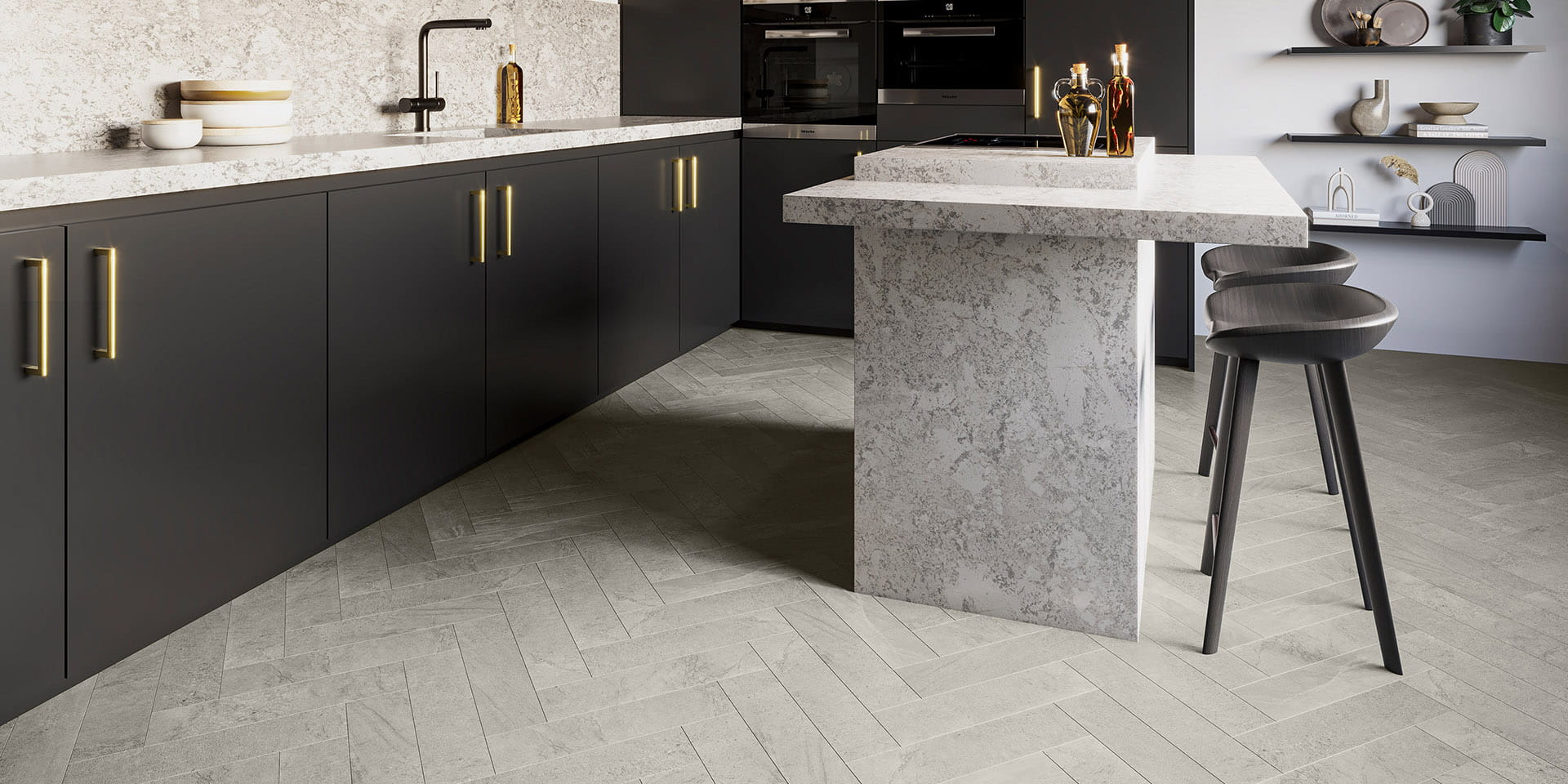 The Invictus Groovy Granite Parquet in Snow offers a sophisticated granite effect in a classic parquet pattern. This premium LVT features a commercial-grade 0.55mm wear layer and dryback installation, making it suitable for both residential and intensive commercial environments.