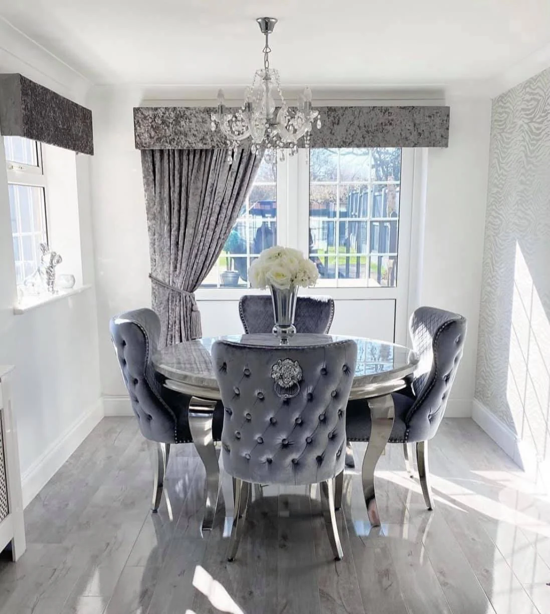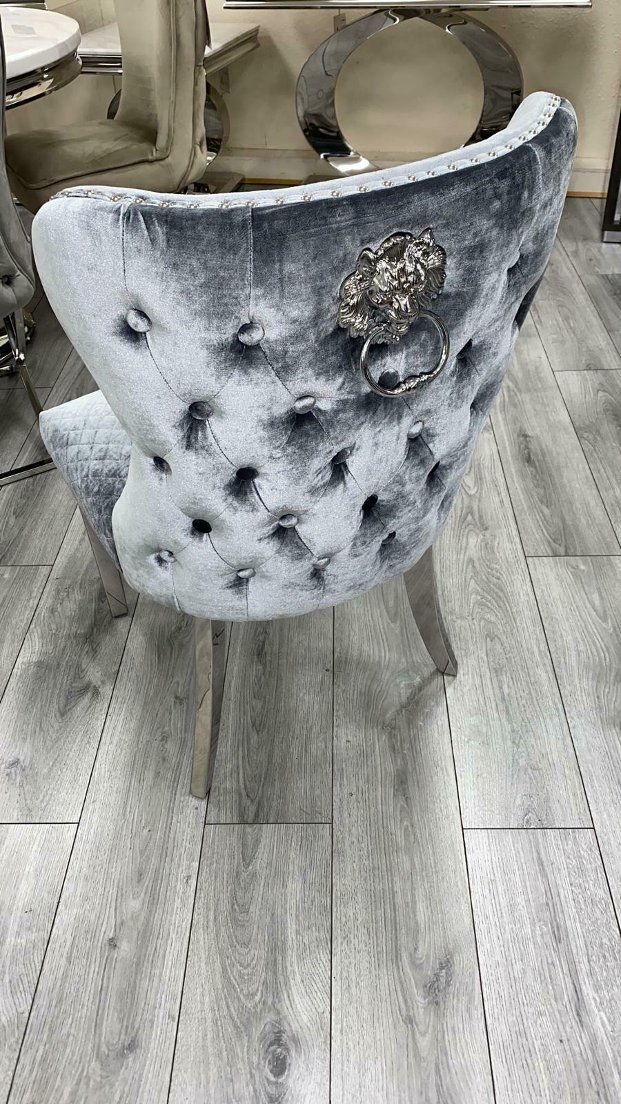 For a truly lavish dining experience, pair the table with the new Chelsea Plush Velvet Chair. Upholstered in soft dark grey plush velvet, this chair combines elegance and comfort. The Chelsea Lion Knockerback Chair is a modern design, featuring luxurious velvet upholstery and sturdy chrome legs for a polished finish.