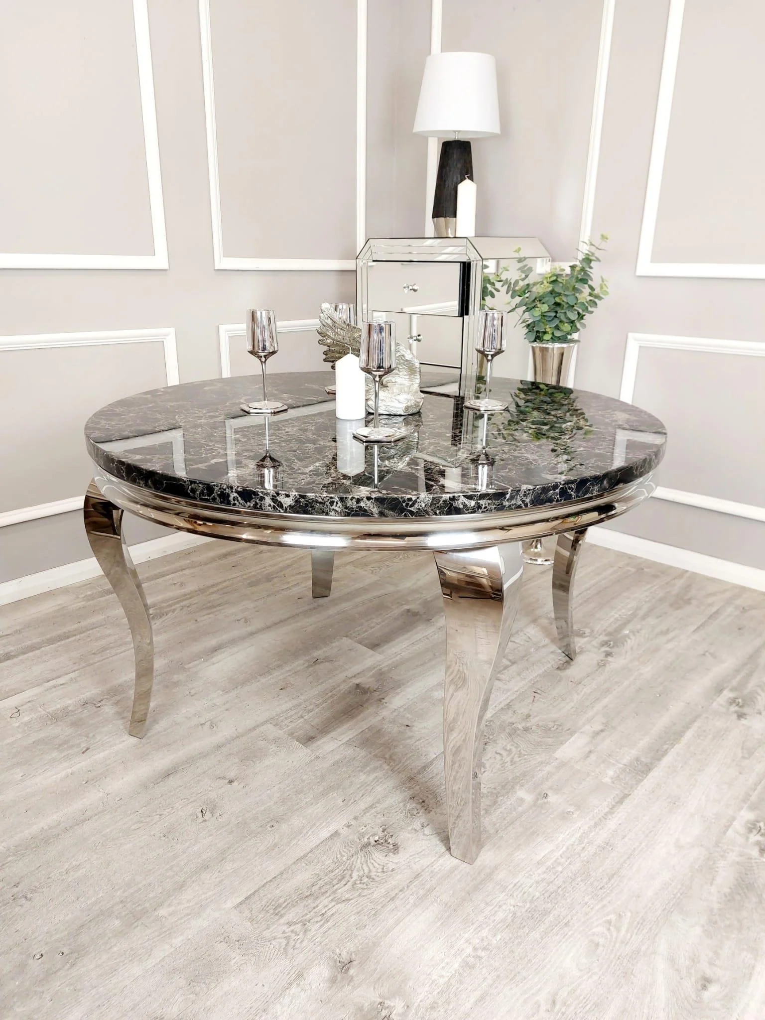 Elevate your dining experience with the Louis Marble Round Dining Range, blending modern design with luxurious materials for an unforgettable style statement.