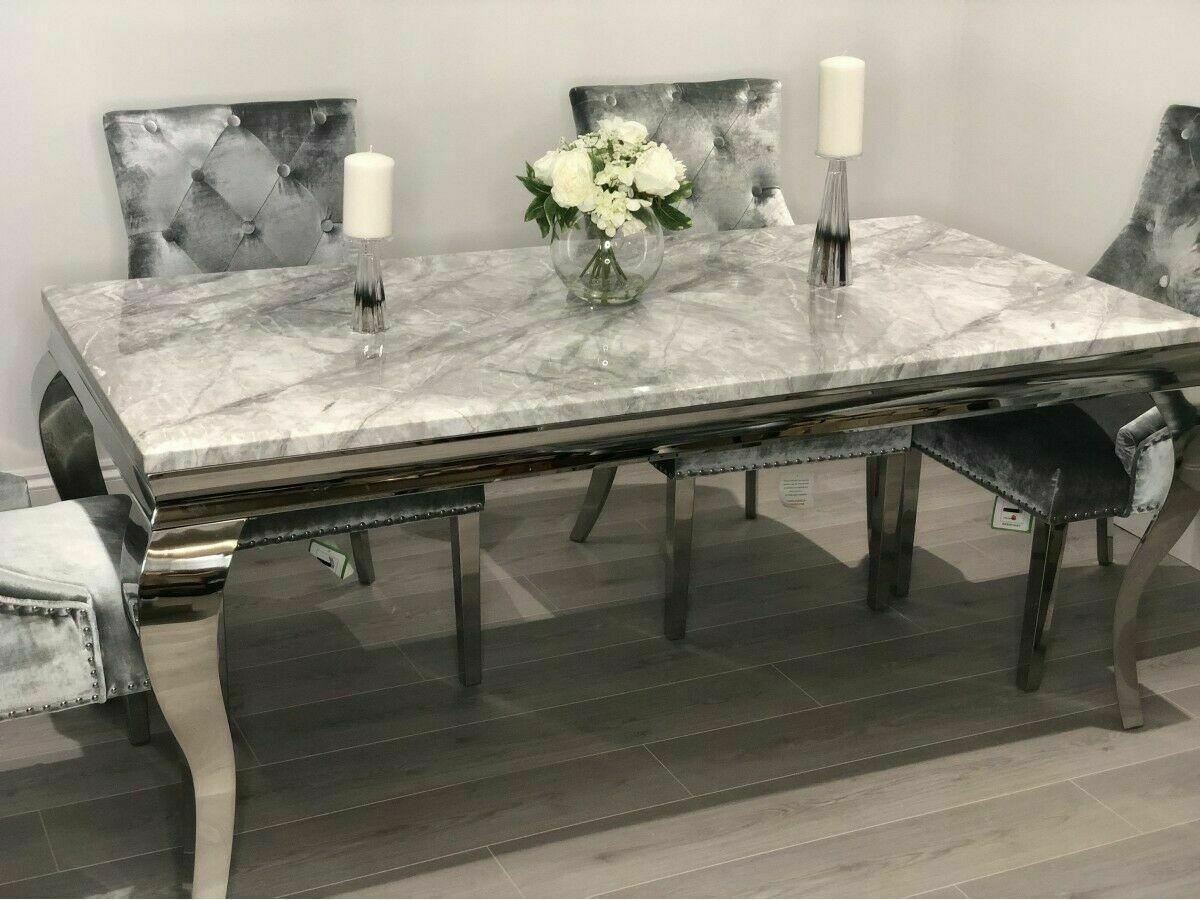 Louis Marble 160CM Dining Table + Victoria Grey Ring Chairs, Bench Option