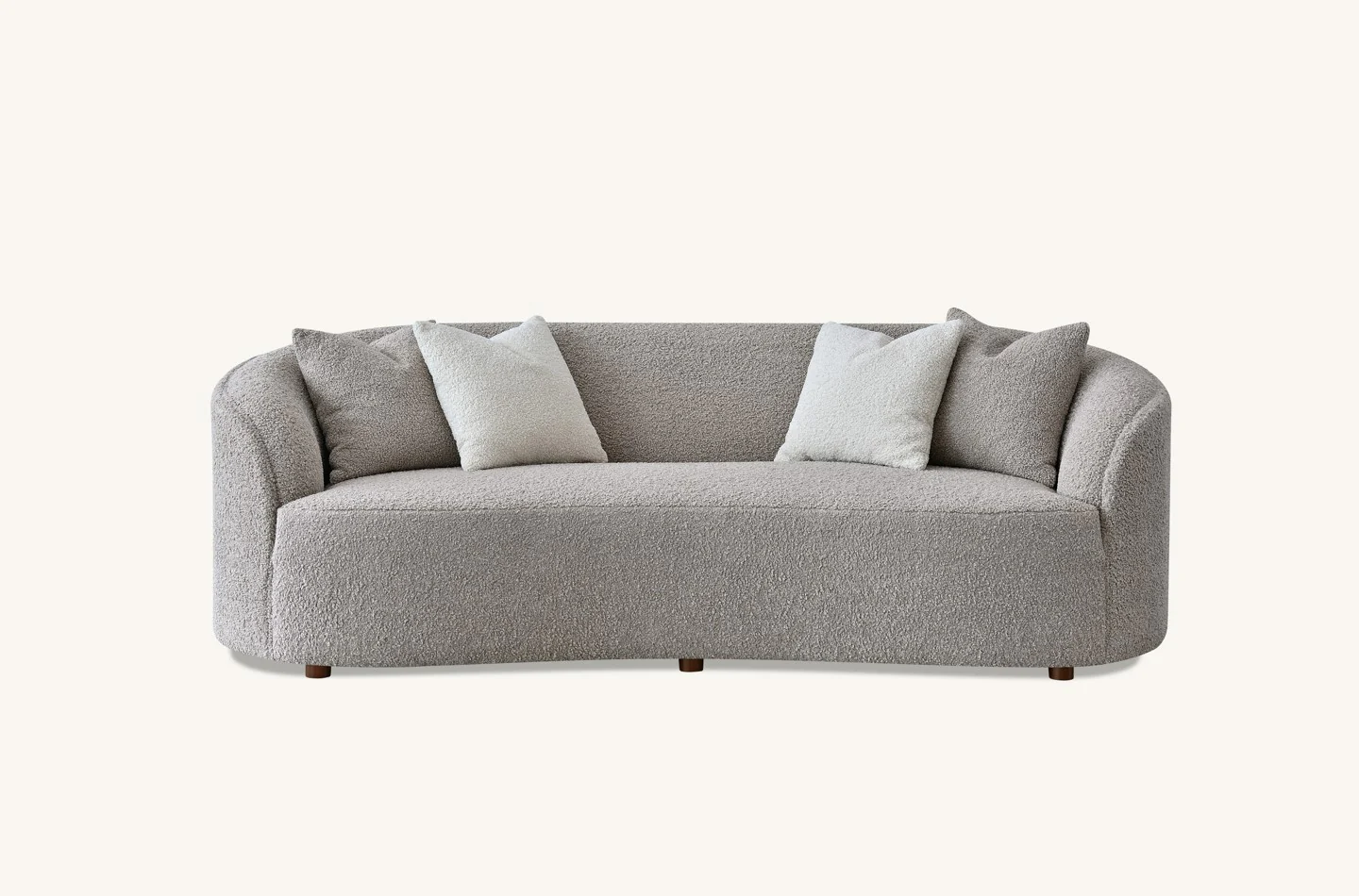 The Nolita Bouclé Teddy range features a distinctive organic silhouette, complete with a curved backrest and deep, inviting cushions that envelop you in comfort. Its neutral tones ensure versatility, making it a timeless addition to any home.